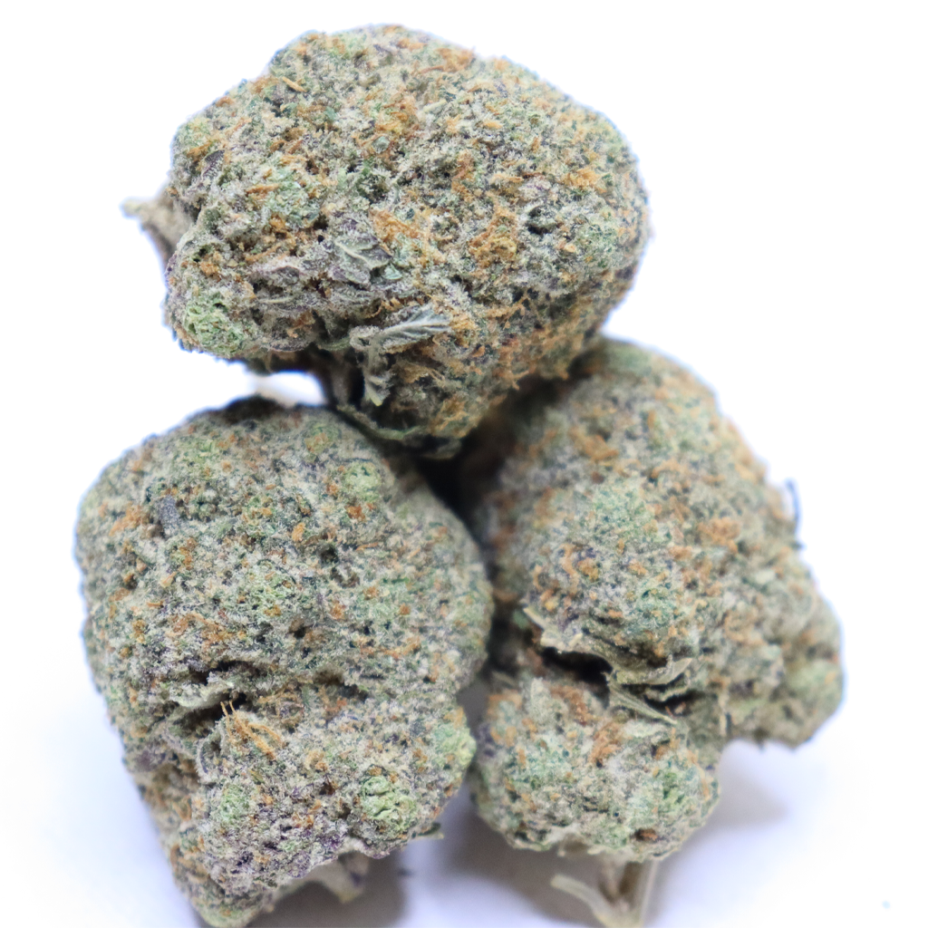 Death Bubba is an indica dominant hybrid (70% indica/30% sativa) strain created as a descendant of the hugely popular Bubba Kush strain. This dank bud boasts an insanely high THC level that ranges between 25-29% and effects that can end in an almost death-like sleep. Almost immediately after smoking, you’ll feel a wave of rushing focused energy wash over you that leaves you uplifted and motivated with tendencies towards having psychoactive experiences. As the high continues, you’ll be eased into a state of utter relaxation with deep introspection and spaciness that can cause you to become distant in social situations. Upon the comedown from the high, Death Bubba pulls you into a deep and peaceful undisturbed sleep that lasts for hours on end, giving you the appearance of being unwakeable. Death Bubba has an aroma of musky earthy pine and a taste of spicy lemon pine with a hint of pungent earth upon exhale. This bud has medium-sized dark forest green nugs with rich purple undertones and a spattering of fiery orange hairs. Each nug is completely covered with dark olive green leaves that are almost furry and have a thick layer of frosty sandy white trichomes.