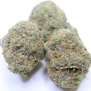 Jet Fuel Gelato is an evenly balanced hybrid strain (50% indica/50% sativa) created through crossing the powerful Hi-Octane X Jet Fuel strains. This celebrity child boasts a super high potency level with a delicious flavor that will leave you coming back for more. The Jet Fuel Gelato high comes on fast and hard, with immediate cerebral effects that hit you between the eyes in no time flat. You’ll feel energized with a sense of creative euphoria that lends itself well to any artistic task or conversation at hand. A tingly body high comes next, sneaking into your limbs before settling in and leaving you feeling fully aroused from head to toe. With these effects and its super high 23-29% average THC level, Jet Fuel Gelato is often chosen to treat those suffering from conditions such as chronic stress, depression, inflammation, chronic fatigue, ADD or ADHD and chronic pain. This bud has a sweet and fruity berry flavor with a lightly peppery sour citrus exhale. The aroma is of fresh sour citrus with a creamy berry overtone that turns spicy and pungent as the nugs are burned away. Jet Fuel Gelato buds have small and rounded forest green nugs with minty green leaves, thick yellow-orange hairs and a coating of frosty, bright white crystal trichomes.
