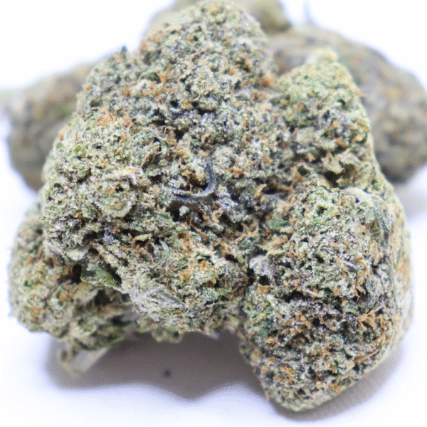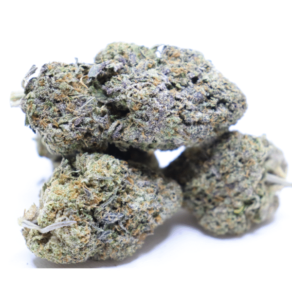 Runtz is a rare evenly balanced hybrid strain (50% indica/50% sativa) created either as a phenotype of the infamous Runtz strain, a Zkittlez X Gelato cross, or as a cross of the delicious Rainbow Sherbet X Pink Panties strains. Described as a strain that will have you ‘talking to your forehead,’ this bud brings on the unfocused and giddy effects that will leave you feeling totally out of it and completely happy about it. The high starts with a rush of cerebral effects, filling you with a happy sense of high-flying euphoria that immediately pushes out any negative or racing thoughts, replacing them with heady unfocused bliss. As your mind settles into this buzzy state, a tingle will begin to spread throughout your physical form, leaving you totally relaxed and kicked back, pain-free from head to toe. In combination with its high 25-30% average THC level, these effects give Pink Runtz an edge in treating conditions such has depression, chronic stress or PTSD, mood swings, nausea or appetite loss and chronic fatigue. This bud has a sweet and fruity cherry berry flavor with a notable hint of sour candy. The aroma is very similar, although with a heavier sour overtone that intensifies as the nugs are burned away. Pink Runtz buds have dense spade-shaped minty green nugs with purple leaves, thin orange hairs and a thick frosty coating of tiny white crystal trichomes.