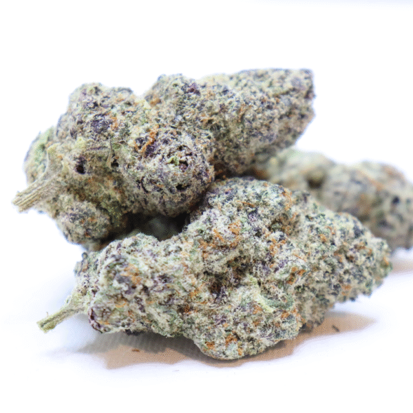 Purple Gelato is an evenly balanced hybrid strain (50% indica/50% sativa) created through crossing the delicious Sunset Sherbet X Thin Mint Girl Scout Cookies strains. Named for its gorgeous appearance and amazing flavor, Purple Gelato is the perfect celebrity child to add to any patient’s go-to lineup. This bud has beautiful dense grape-shaped bright emerald-green nugs with deep purple undertones, lots of thin orange hairs and a thick, frosty coating of chunky, purple-tinted white crystal trichomes practically dripping with sweet resin. As you pull apart each sticky little nugget, aromas of sweet fruity grapes, spicy cherries and peppery diesel are released. The flavor is on the fruitier side, with a bouquet of fresh sugary berries, ripe cherries and spicy grapes dancing across your tongue with each and every toke. The Purple Gelato high will hit you a few minutes after your final exhale, relaxing the body and activating the mind at once. You’ll feel calm yet mentally stimulated, filled with a lifted sense of happy creativity. Your body will be deeply relaxed but not totally couch-locked or sedated. In combination with its super high 25-29% average THC level, these effects give Purple Gelato an edge in treating chronic stress or anxiety, depression, chronic pain and insomnia.